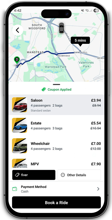 For over 15 years, CEC Minicabs Ilford has been the trusted choice for private hire taxi services across London. Whether you need reliable airport transfers, safe school runs, or efficient A to B journeys, our fleet of modern vehicles is ready to serve you. Book your next ride effortlessly using our convenient app or online web booker.